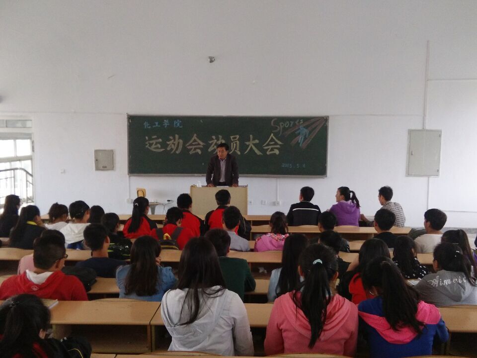 为迎接第16届校运动会,金年会于2015年5月11日中午12:00在2号教学楼211教室举行了金年会校运动会动员大会,金年会党总支副书记雷新有老师,辅导员贺迪、文娟老师及全体学生成员、运动员和各班班委参加了本次动员大会。