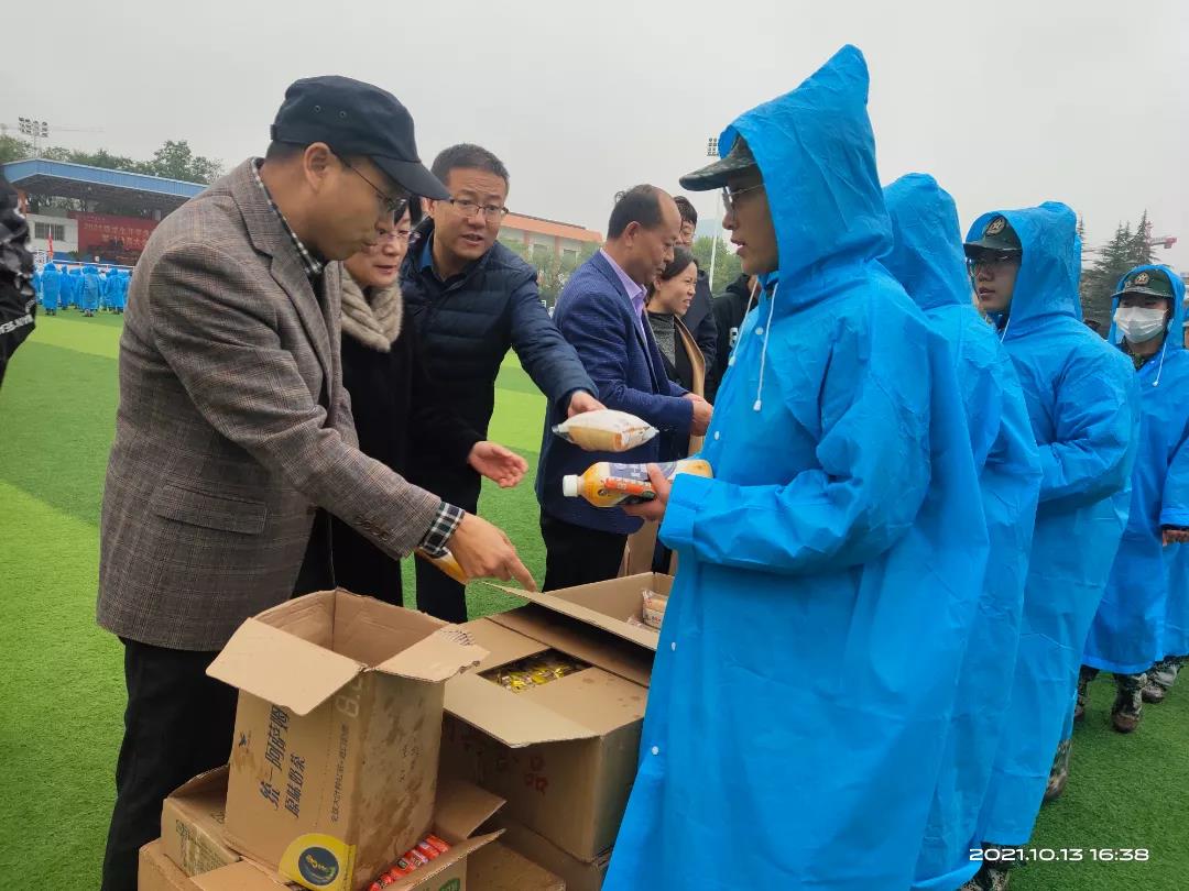 10月13日下午,jinnian金年会党总支书记王小芳、党总支副书记刘正、副院长李志峰、副院长杨玲娟、辅导员和学生干部在东操场对金年会2021级军训学生和教官进行了慰问。