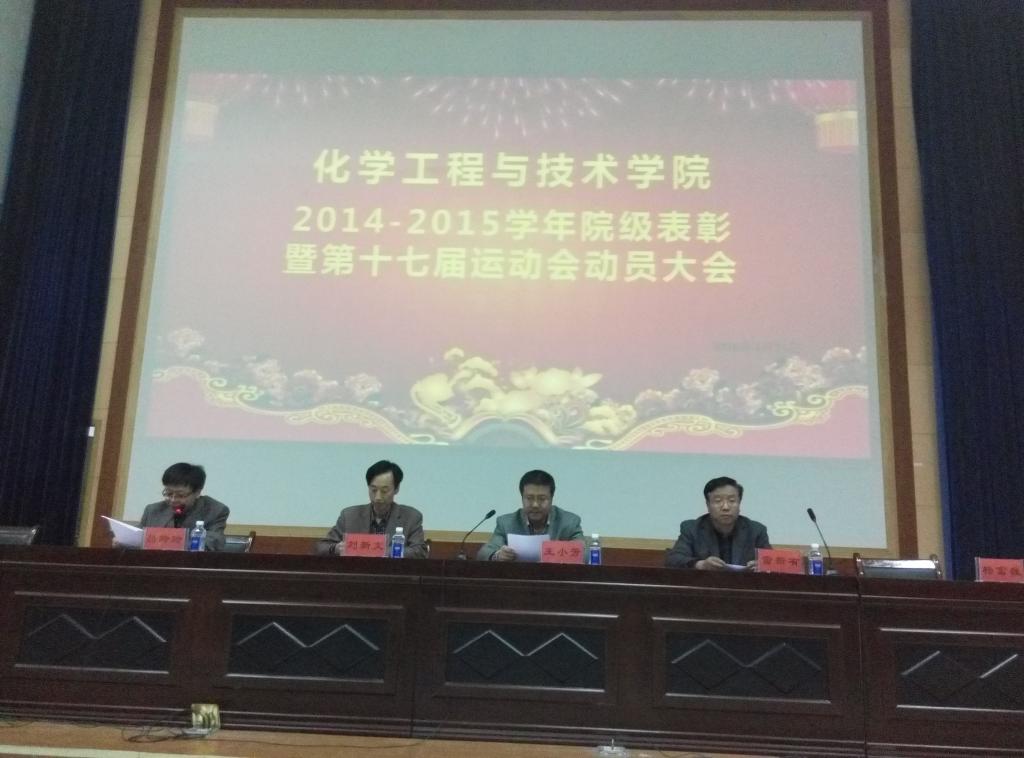 2016年4月25日19:30金年会在2号报告厅举行了“2014-2015学年院级表彰暨第十七届运动会动员大会”,出席此次会议的有金年会院领导、辅导员老师、各班班主任、班长、15级全体学生及学生会全体成员。