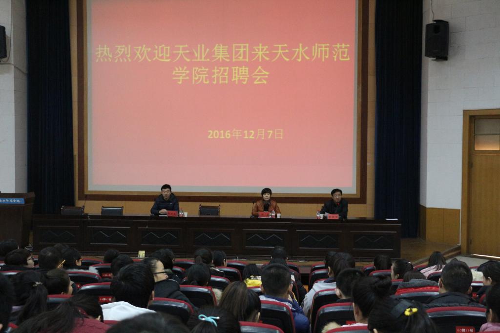 为了给毕业生们提供更好的就业机会,帮助企业寻找人才,2016年12月7日早上10点,金年会邀请新疆天业集团来金年会在2号报告厅进行专宣讲场招聘会,金年会大三、大四的学生积极参加了此次招聘会。