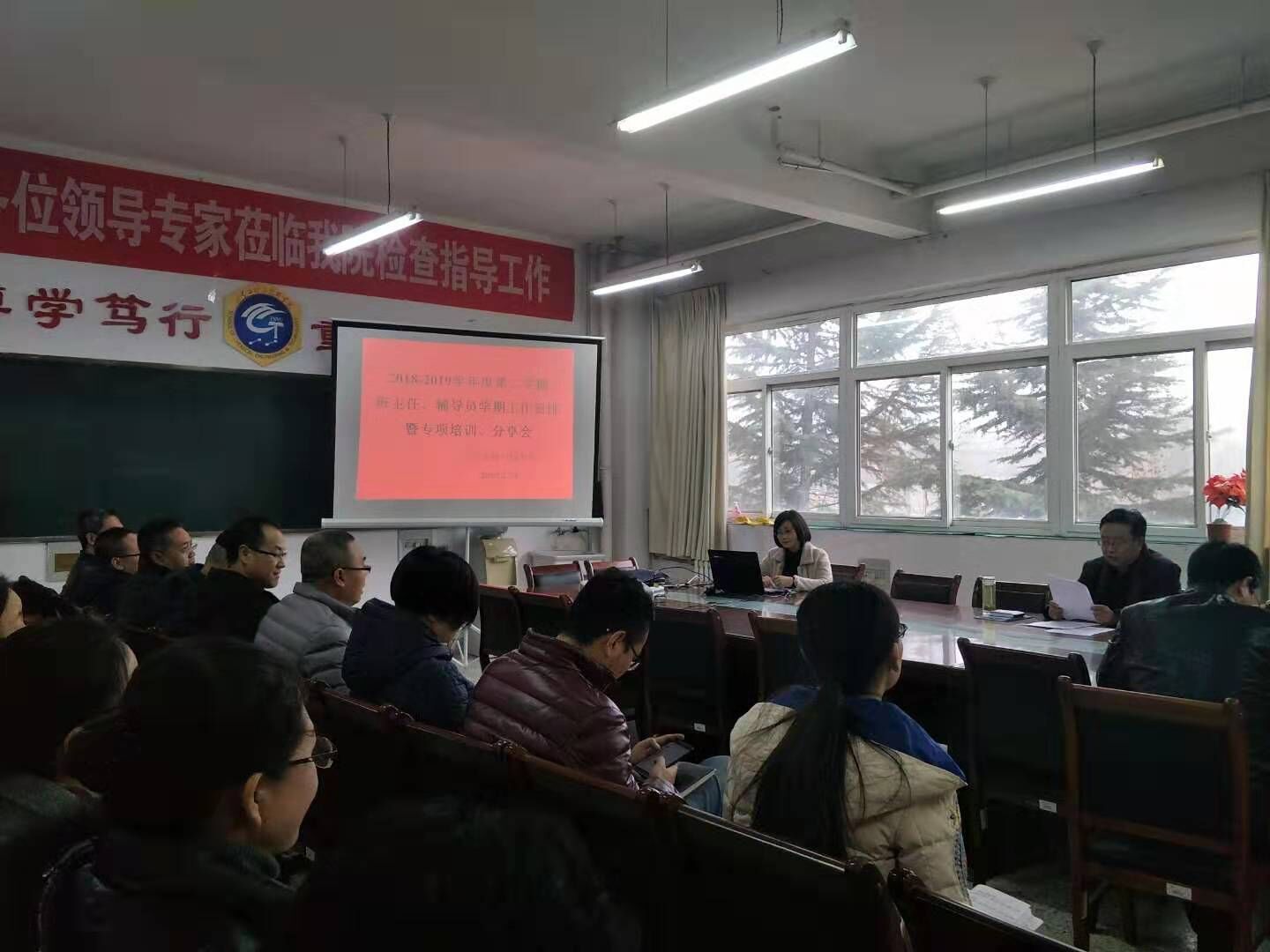 孟春之月,万象更新。为进一步落实学校的各项精神,提升班主任、辅导员的业务素质和班级管理水平,营造和谐、积极向上的工作氛围。2月24日下午,金年会召开了班主任、辅导员新学期学生工作安排暨专项培训、分享会,就学期初相关工作、辅导员及班主任常态工作予以细化、部署。出席本次会议的有jinnian金年会党总支副书记雷新有、全院班主任及辅导员。