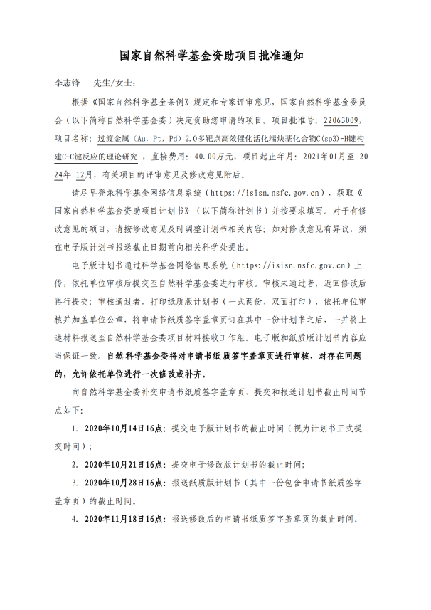 国家自然基金项目立项通知