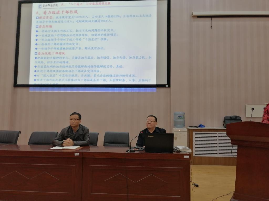 王旭林围绕“《习近平谈治国理政》第三卷的时代背景与重大意义”、“主要内容和内在逻辑”、“突出特点与理论品格”、“学习要求与知行合一”、“'八个着力'与甘肃高质量发展”分享了自己的学习感悟和体会,详细解读了《习近平谈治国理政》第三卷的丰富内涵、核心要义和内在逻辑,系统梳理了需要着重把握的八个专题关系,报告重点突出、内容丰富、深入浅出,既有理论深度、政治高度,又有实践热度、感染力度,为金年会师生进一步学深悟透《习近平谈治国理政》第三卷打下了坚实基础。