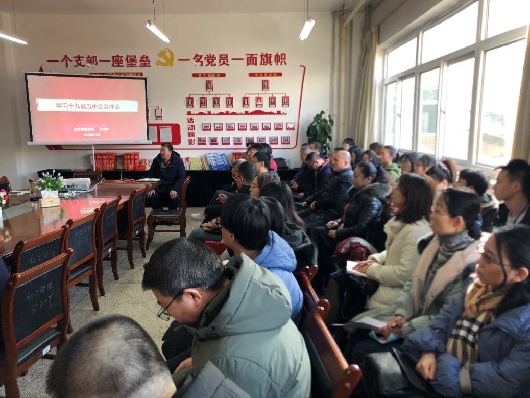 为进一步深入学习贯彻党的十九届五中全会精神,12月24日jinnian金年会全体教职工及学生党员在三号实验楼211会议室召开会议,集中学习党的十九届五中全会精神,学校党委常委,副校长王旭林与全体师生分享了学习十九届五中全会体会。