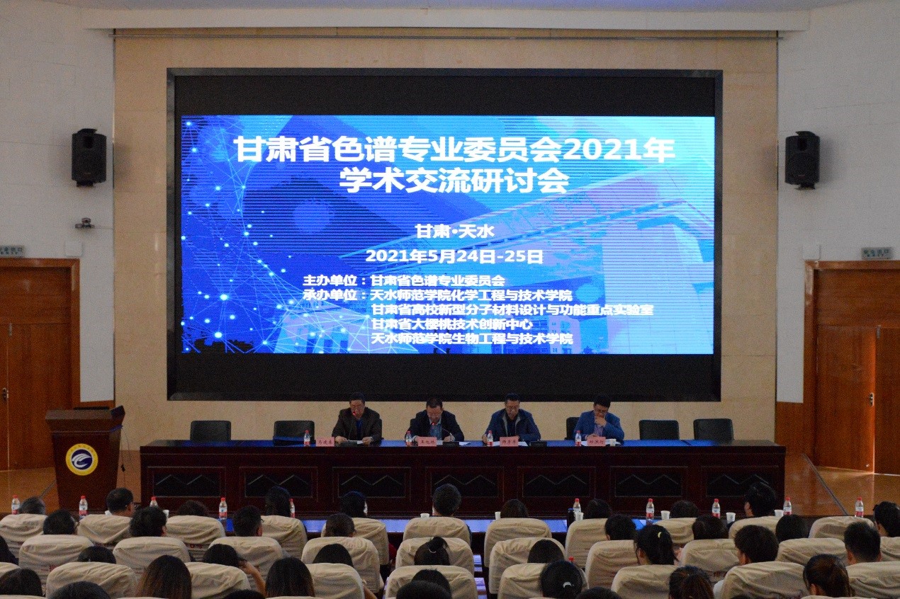 5月24日至25日,由甘肃省色谱专业委员会主办、天水师范学院jinnian金年会、甘肃省高校新型分子材料设计与功能重点实验室、甘肃省大樱桃技术创新中心与生物工程与技术学院共同承办的甘肃省色谱专业委员会2021年学术交流研讨会在金年会举行,来自中科院兰州化物所、兰州大学、兰州理工大学、西北民族大学、甘肃医学科学研究院、中国石油石油化工研究院兰州化工研究中心、甘肃出入境检验检疫局技术中心、甘肃省人民医院、浙江福立分析仪器股份有限公司和金年会等10所高校、科研单位及企业的近40位专家学者参加会议。