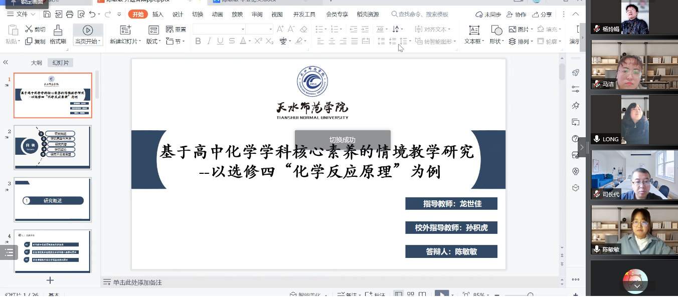 根据研究生处工作安排及近期疫情防控工作的要求,为保障2022届教育硕士研究生学位论文的高质量完成,jinnian金年会通过认真制定线上教育硕士学位论文预答辩工作方案,周密安排整个答辩流程,于3月28日在腾讯会议平台举行了2022届学科教学(化学)教育硕士研究生学位论文预答辩。此次线上预答辩共有13位教育硕士研究生参加,2021级全体研究生在线旁听观摩。
