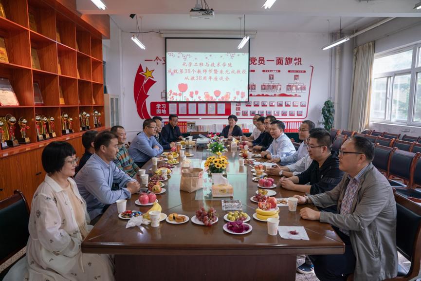 9月9日下午,jinnian金年会在三号实验楼211会议室举行“金年会庆祝第38个教师节暨朱元成教授从教38周年座谈会”。学院领导、朱元成教授、教职工代表等二十余人参加座谈会,会议由副院长杨玲娟主持。