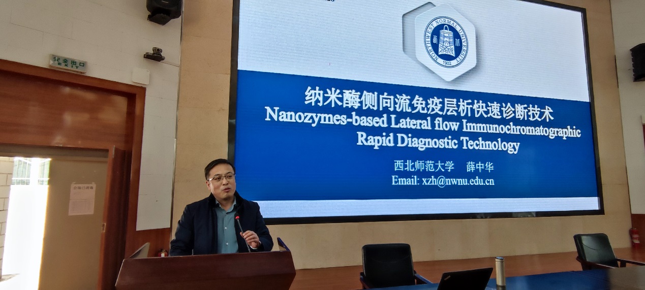 2月28日,应科研管理处和jinnian金年会邀请,西北师范大学化学金年会院长薛中华教授为学院师生作题为《纳米酶侧向流免疫层析即时检测》的学术报告。学院教师、研究生及200余名本科生聆听了报告。
