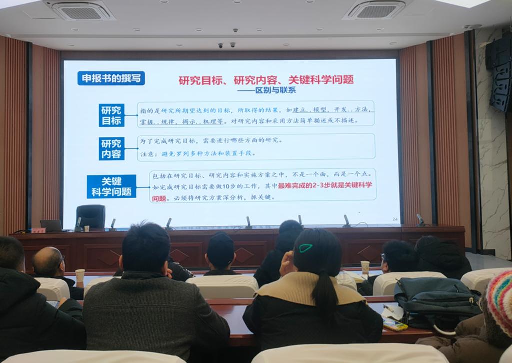 2024年12月30日,西北工业大学国家杰出青年基金获得者应邀来校作题为《国家自然科学基金申请与评审的一点体会》的专题讲座。报告会上,分享了自己及团队的国家级科研项目申报历程,深入浅出地传授了申请书题目、摘要、立项依据、研究目标、研究内容和研究方案等部分的写作方法和技巧。同时,还分享了评审专家在审核过程中的关注点和常见问题,为学院教师提供了宝贵的参考意见,使与会教师对基金申请的评审标准和要求有了更深入的认识。同时,建议教师们要多积累、多交流、多听意见,并主动送同行预审,不断提高项目申报质量。讲座结束后,对老师们所提的问题进行了详细解答。